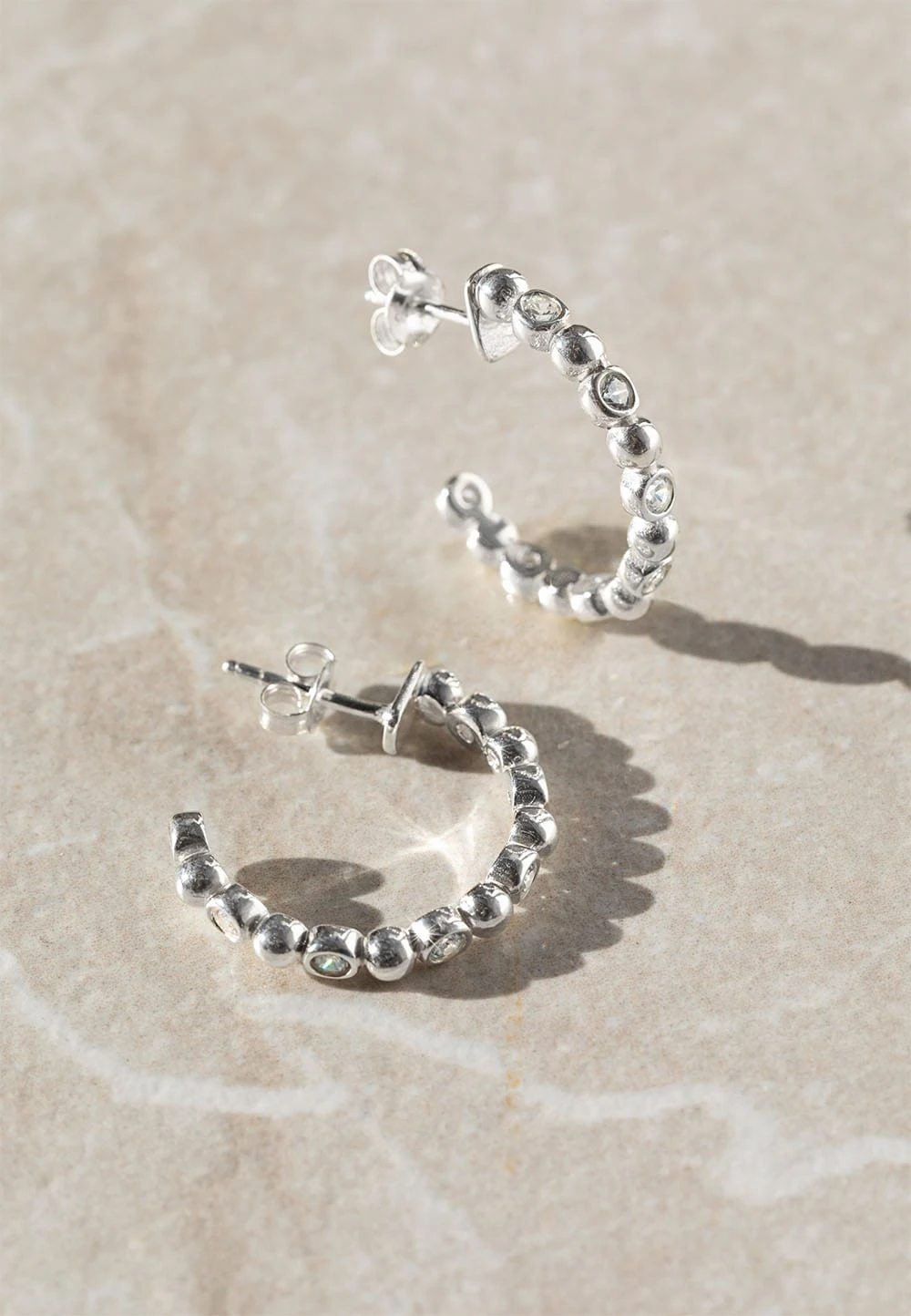 El diseño de estos aros es abierto, lo que les da un toque original y diferente. Además, las circonitas intercaladas en el aro le añaden un brillo sutil.