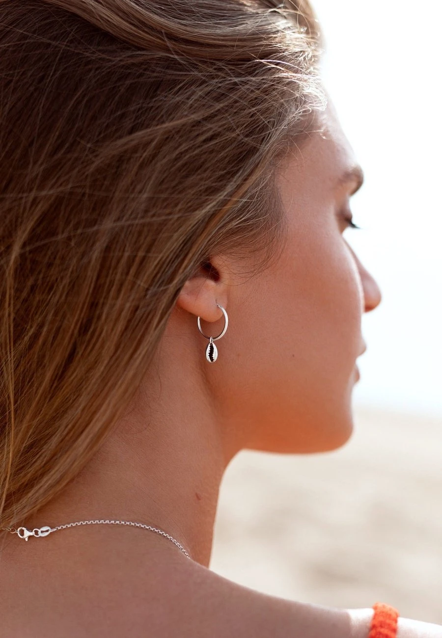 Los pendientes KARUN favorecen y estilizan el rostro. Estos aritos con el detalle de la pequeña caracola son ideales. El cierre de estos es tipo hippie.