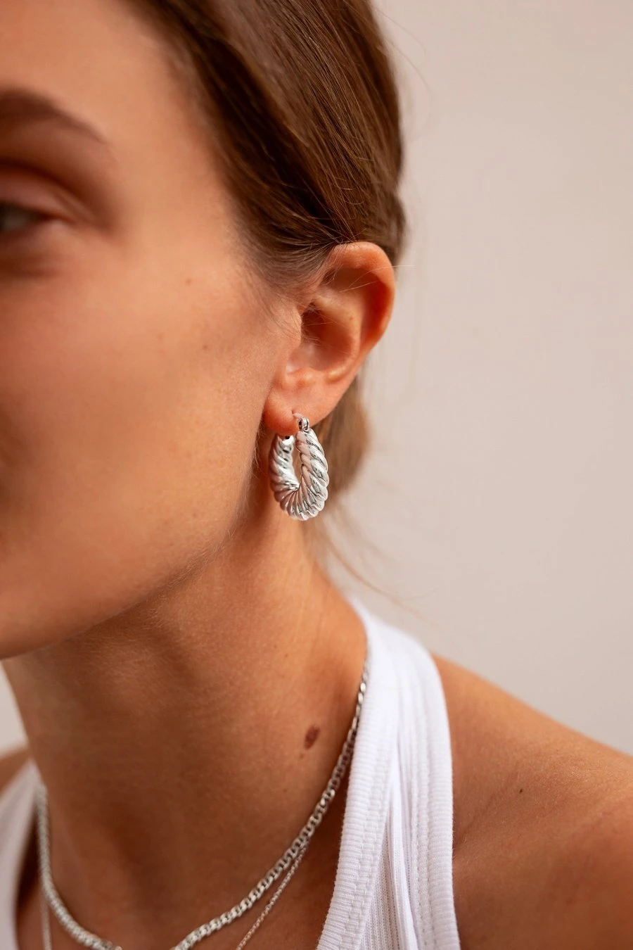 El juego de vueltas sobre sí mismos crea una sensación de movimiento, mientras que el efecto de caída, con la parte superior más estrecha y la parte inferior que se ensancha, añade un toque de gracia y fluidez a tu estilo. Es como llevar contigo la esencia de la naturaleza en una joya.