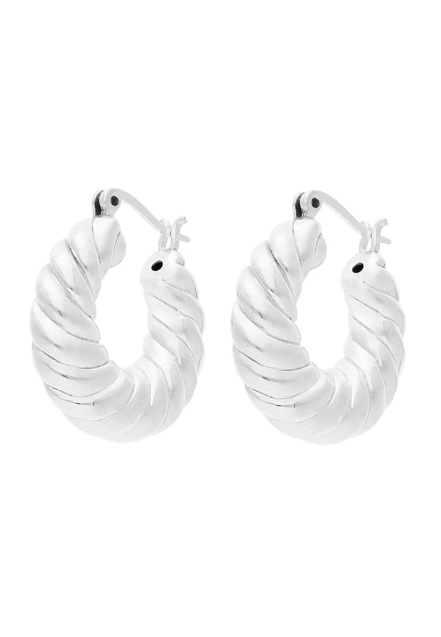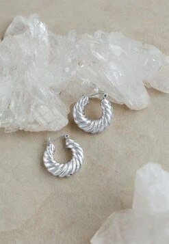 Los pendientes Maitri de plata de ley 925 presentan un diseño único, con la forma caprichosa de una caracola.