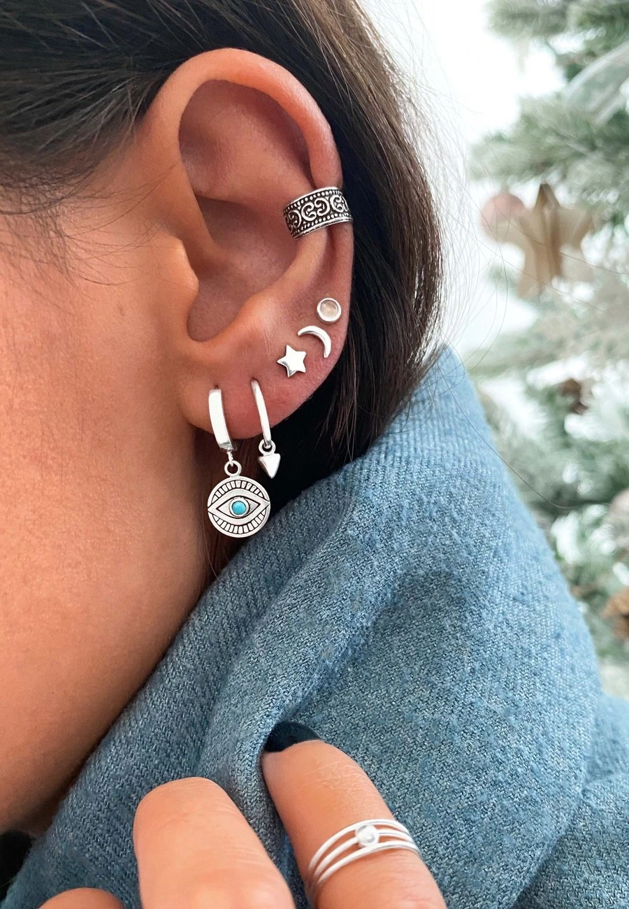 Los NARENDRA son aritos fuera de lo habitual, te van a encantar. Quedan muy bien, puedes colocarlo en el agujerito que más te guste, son de tamaño pequeño y puedes acompañarlos con otros pendientes y aritos, lisos y bali, son muy fáciles de combinar.