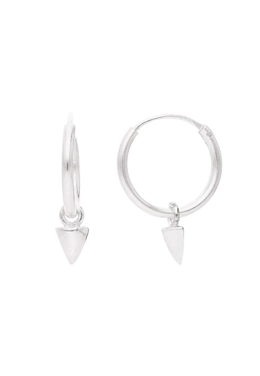 Los pendientes NARENDRA son unos aritos de 12mm de diámetro finitos de plata de ley 925 con una triangulito colgando. Su diseño es muy sencillo, del arito cuelga una pieza pequeña en forma de triángulo que les da un toque muy sutil y original, recuerda a una flecha.