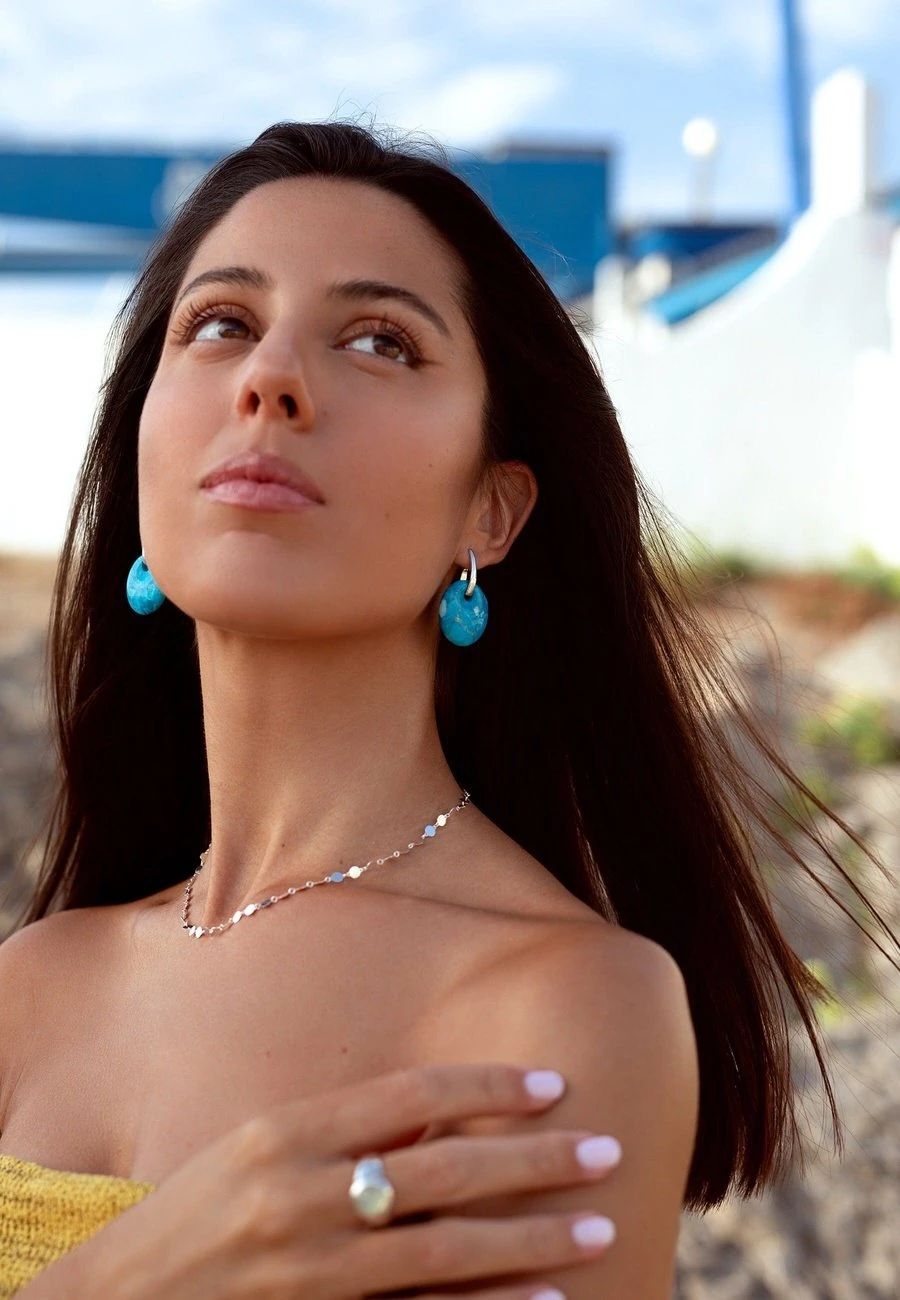 La piedra natural Howlite Turquesa de estos pendientes se convertirá en el centro de atención y su tonalidad azul te permitirá lucirte en cualquier ocasión.Â
