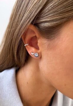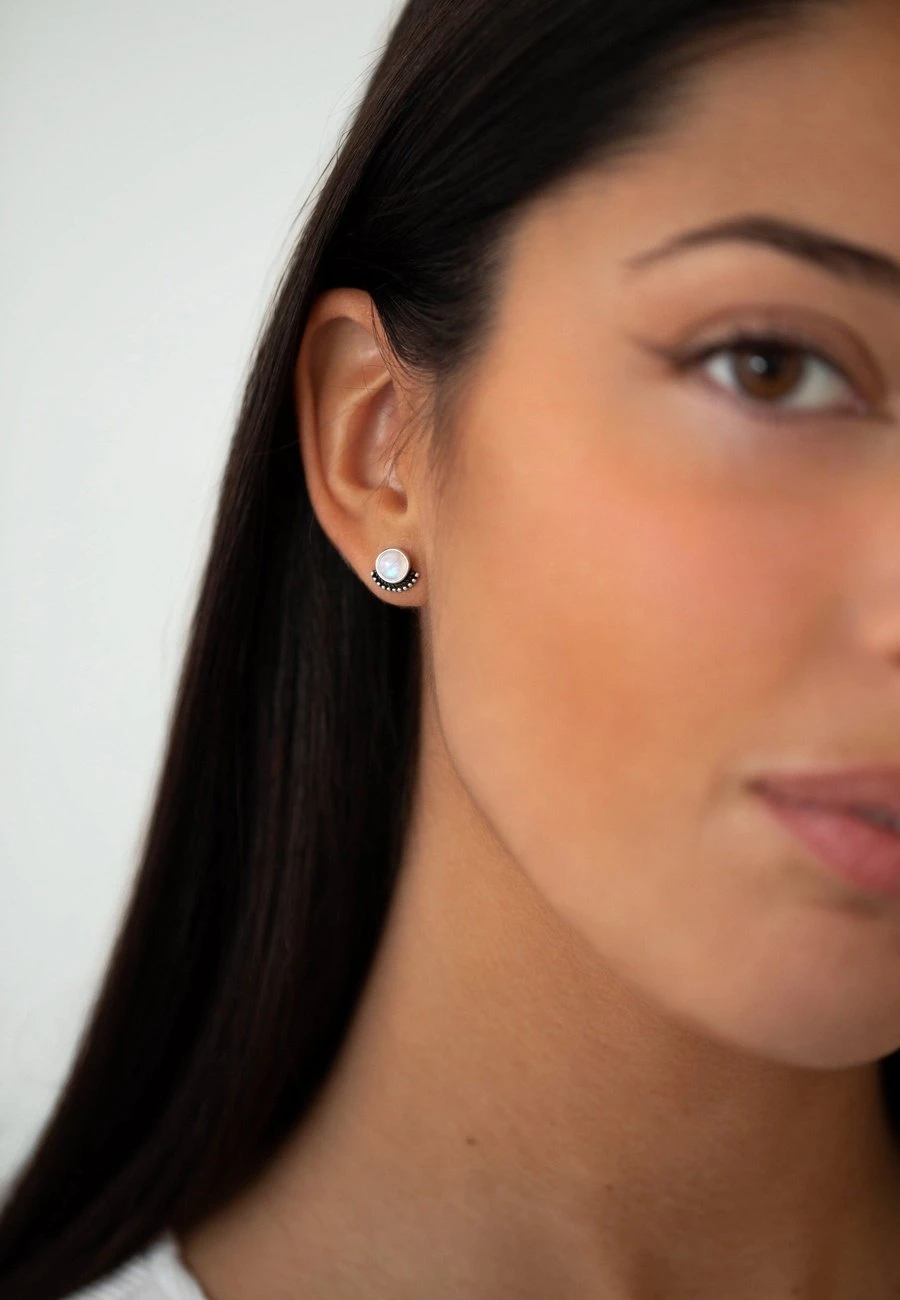 El diseño de los RAGA está formado por una Piedra Luna redondeada, apoyada en un arco de Plata de Ley 925 con bolitas y un entrelazado.