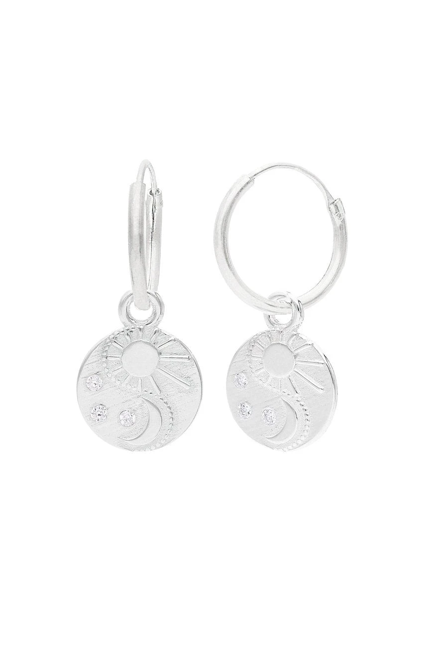 Los RAJAT son unos aros lisos y finitos de los que cuelga una chapita con el diseño del Yin Yang. En la chapita también hay 3 circonitas muy pequeñas que le dan un toque de brillo a la joya.
