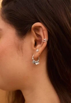 El diseño de los REVA destaca por tener varias chapitas y bolitas intercaladas que cuelgan del aro. Son unos pendientes con mucho dinamismo y personalidad.