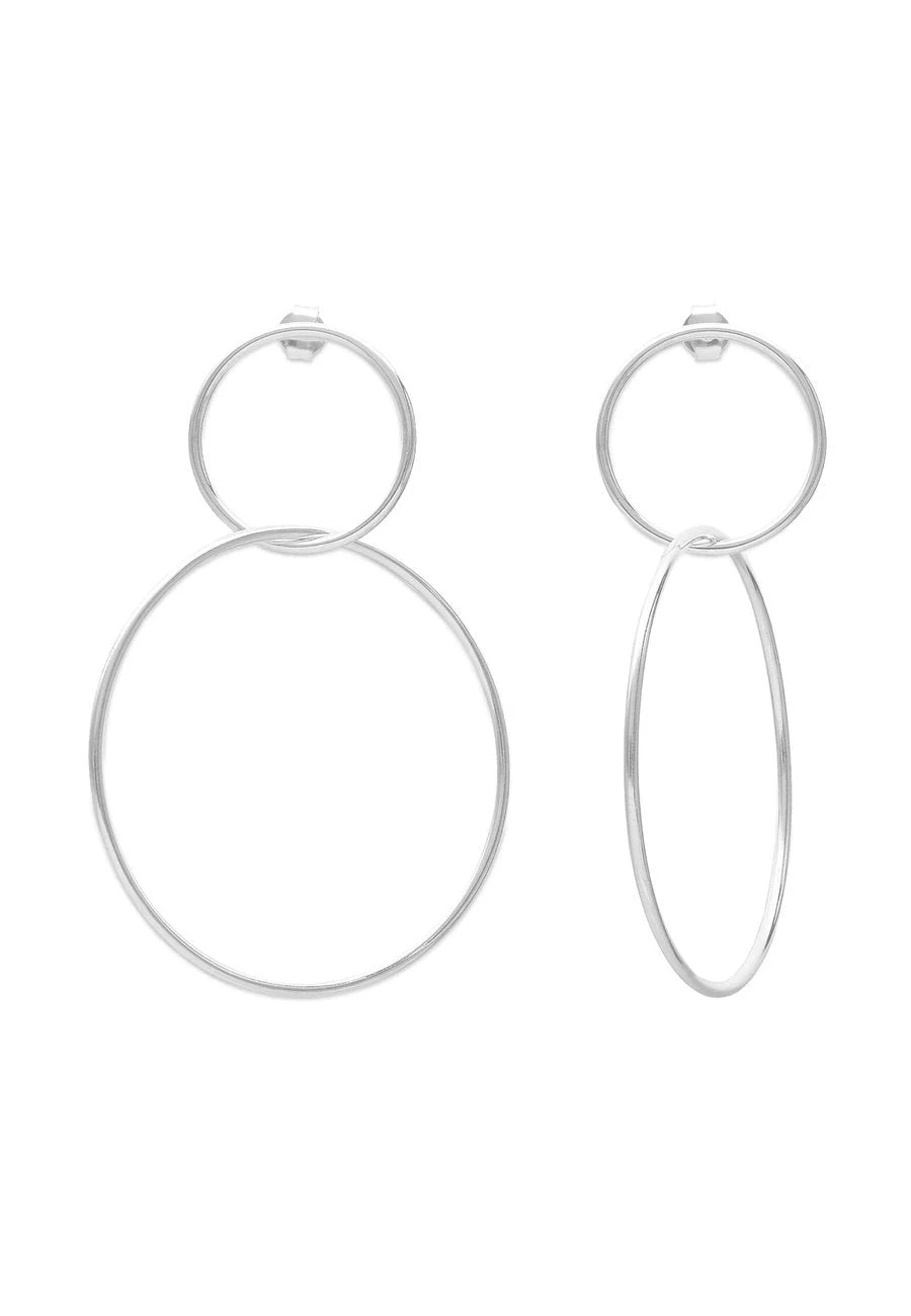 Su diseño alargado aporta un aspecto moderno y chic, perfecto para ocasiones especiales o para añadir un toque de glamour a tu look diario. La combinación de los aros finitos en diferentes tamaños crea un juego de dimensiones que añade profundidad y estilo a tus orejas