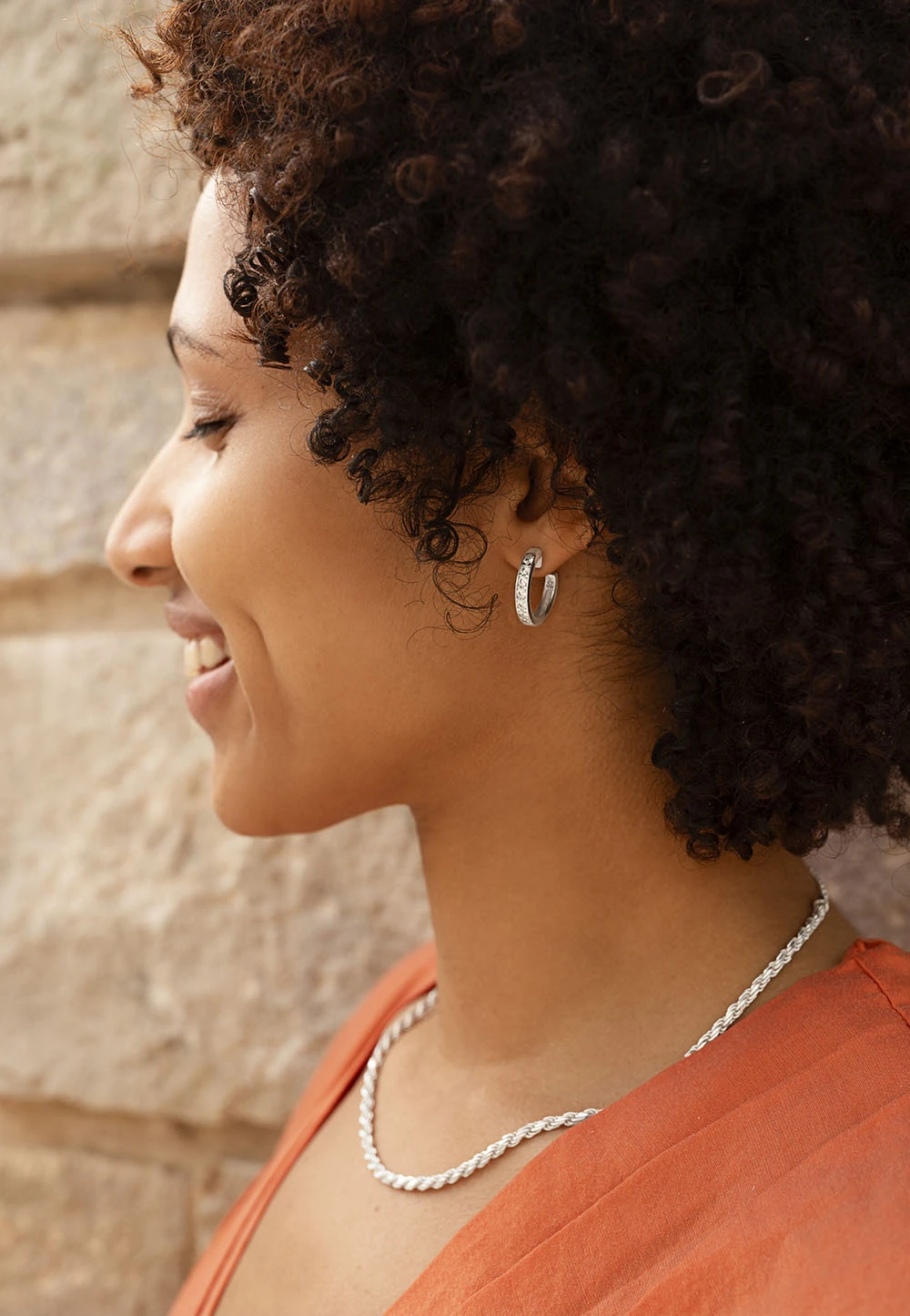 Los pendientes SURI de 20MM son unos aros de Plata de Ley 925 con circonitas incrustadas. Son ideales para darle un toque de brillo a tu look y lucir en eventos especiales.