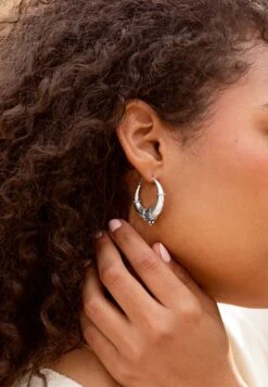 Los pendientes TIRTHA (30mm) son unos aros de plata de tamaño más bien grande.