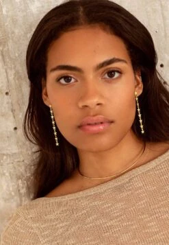 Estos pendientes Ulka de plata de ley 925 y chapados en oro, son simplemente impresionantes para destacar en una cena o cualquier ocasión especial. La longitud de los pendientes agrega un toque de sofisticación, haciendo que destaquen de manera sutil pero impactante.