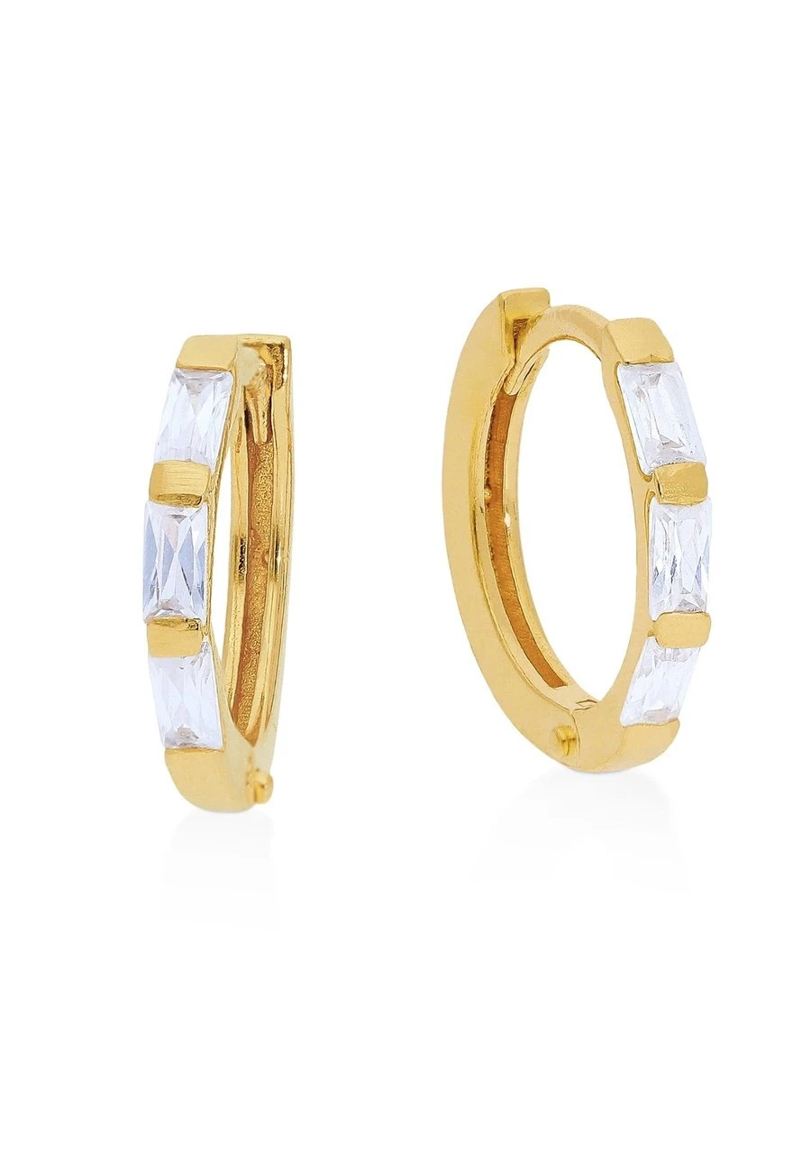 Los VELA tienen un diseño elegante formado por un aro liso con tres circonitas. Las piedras tienen forma alargada y rodean el aro aportando valor a la pieza.