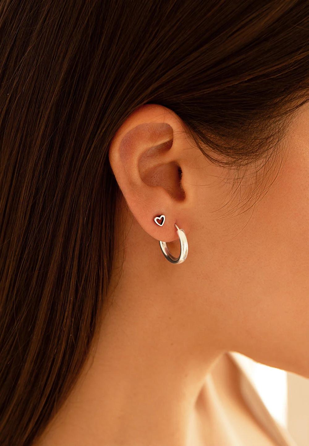 Los pendientes YOOM son pendientes con la silueta del corazón. Son finitos y dibujan la forma del corazón con líneas suficientemente gruesas para que quede bien definido.