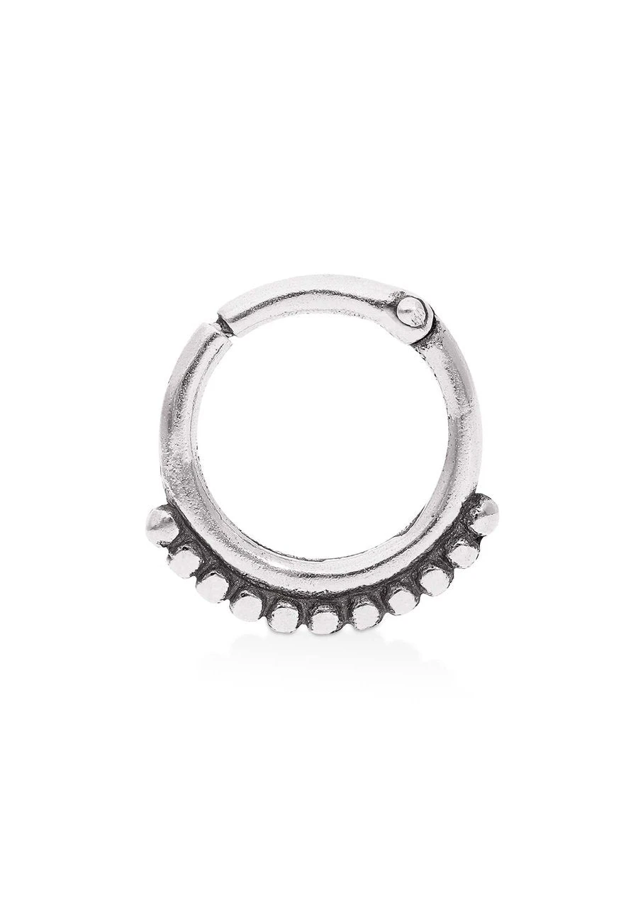 El NARAD es de plata de ley 925 y está formado por un aro de 10 mm rodeado en la parte inferior por una hilera de bolitas una al lado de la otra. Estas bolitas le dan al piercing un toque original y lo convierten en una joya única y muy bonita.