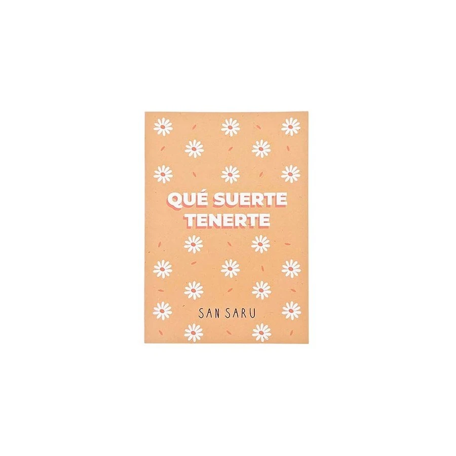 La BHAAGY es una postal preciosa con un diseño muy primaveral. Es perfecta para dedicarle a alguien especial. Su diseño destaca por tener un fondo naranja con la frase “Que suerte tenerte” rodeada de margaritas blancas.