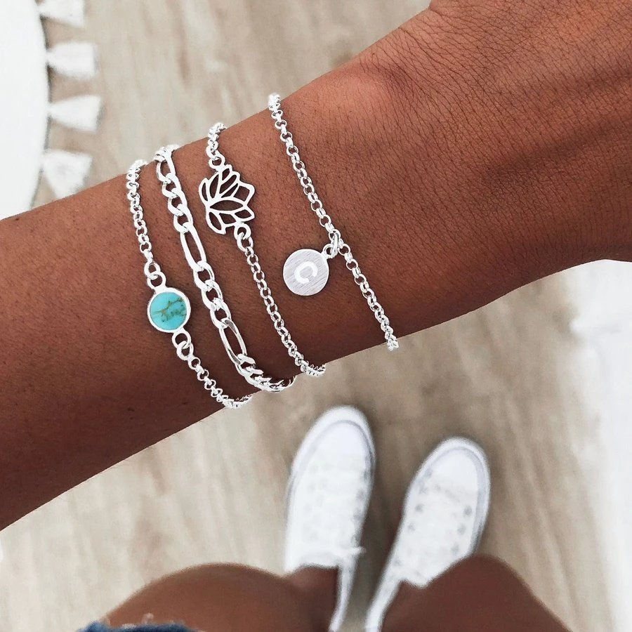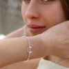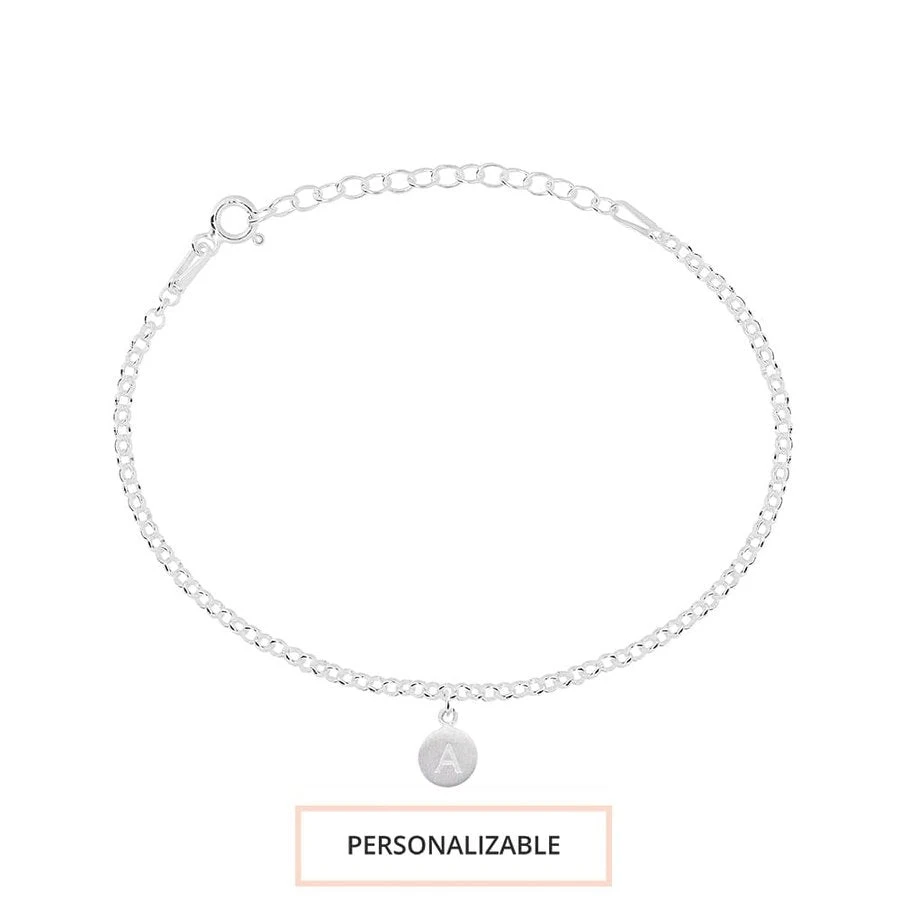 La pulsera AKSHAR es una pulserita muy sencilla con inicial. La inicial viene grabada en una base plana redondeada de plata de ley 925.