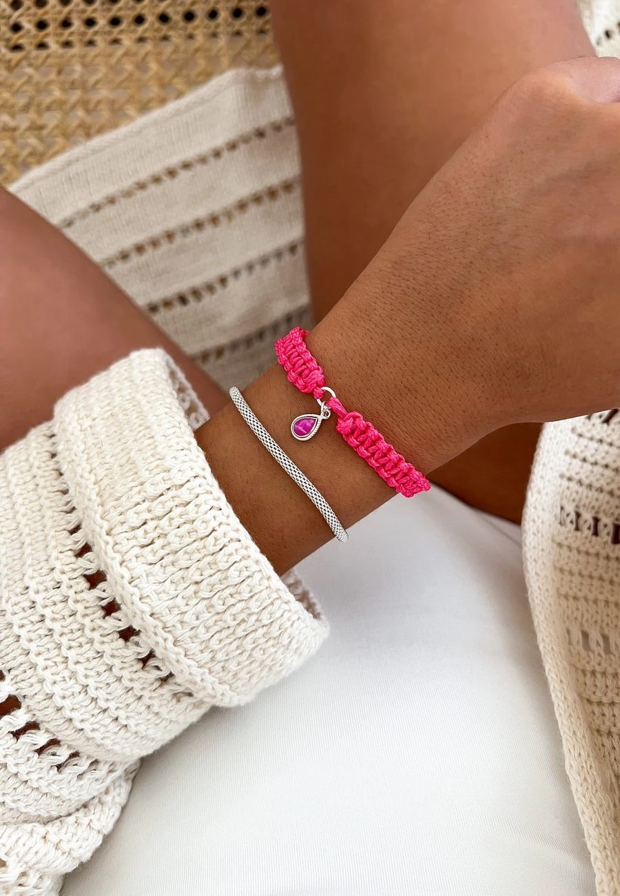 La CHANGLA es una pulsera de macramé fucsia con acabados en Plata de Ley 925. Tiene un color superllamativo, ¡perfecta para combinar con otras pulseras en verano!