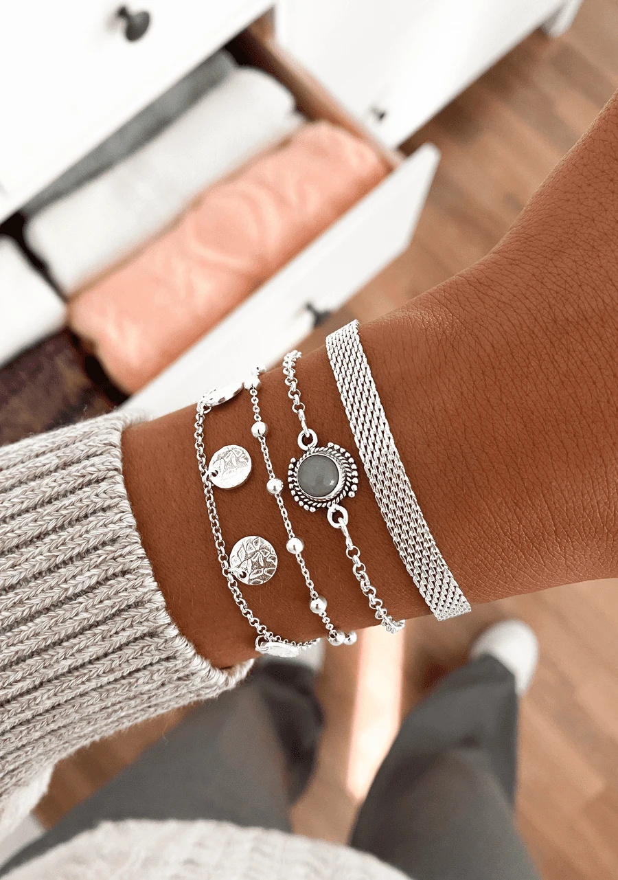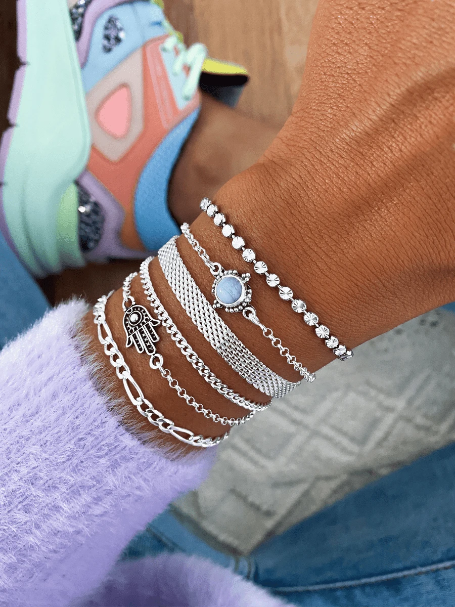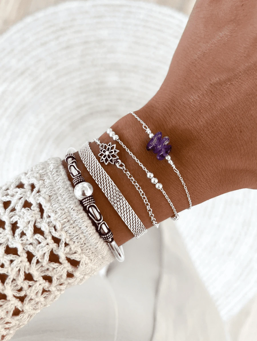 Esta pulsera es una joyita que enamora. Tiene un brillo y una esencia especial. Podrás llevarla sola, ¡destaca muchísimo! Pero si lo prefieres, también da juego para combinarla con otras pulseras.