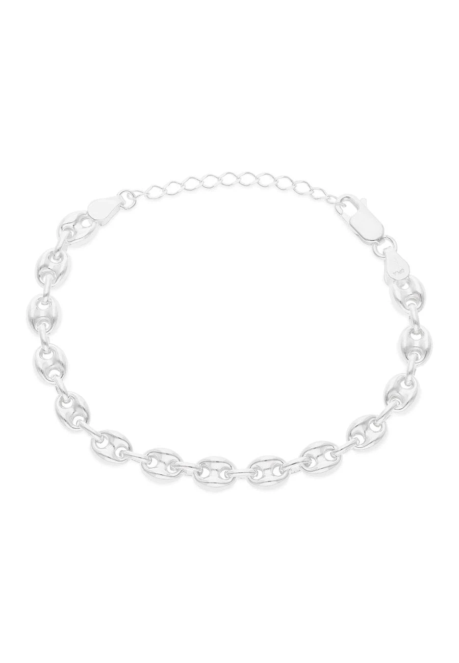 Te presentamos nuestra pulsera Kutir de plata de ley 925. Esta espectacular pieza de joyería está compuesta por exquisitas piezas ovaladas de notable grosor, las cuales destacan por tener dos agujeros en los laterales. En estos agujeros estan colocados las piezas de unión, creando un efecto único y elegante que realza tu estilo con un toque de distinción.