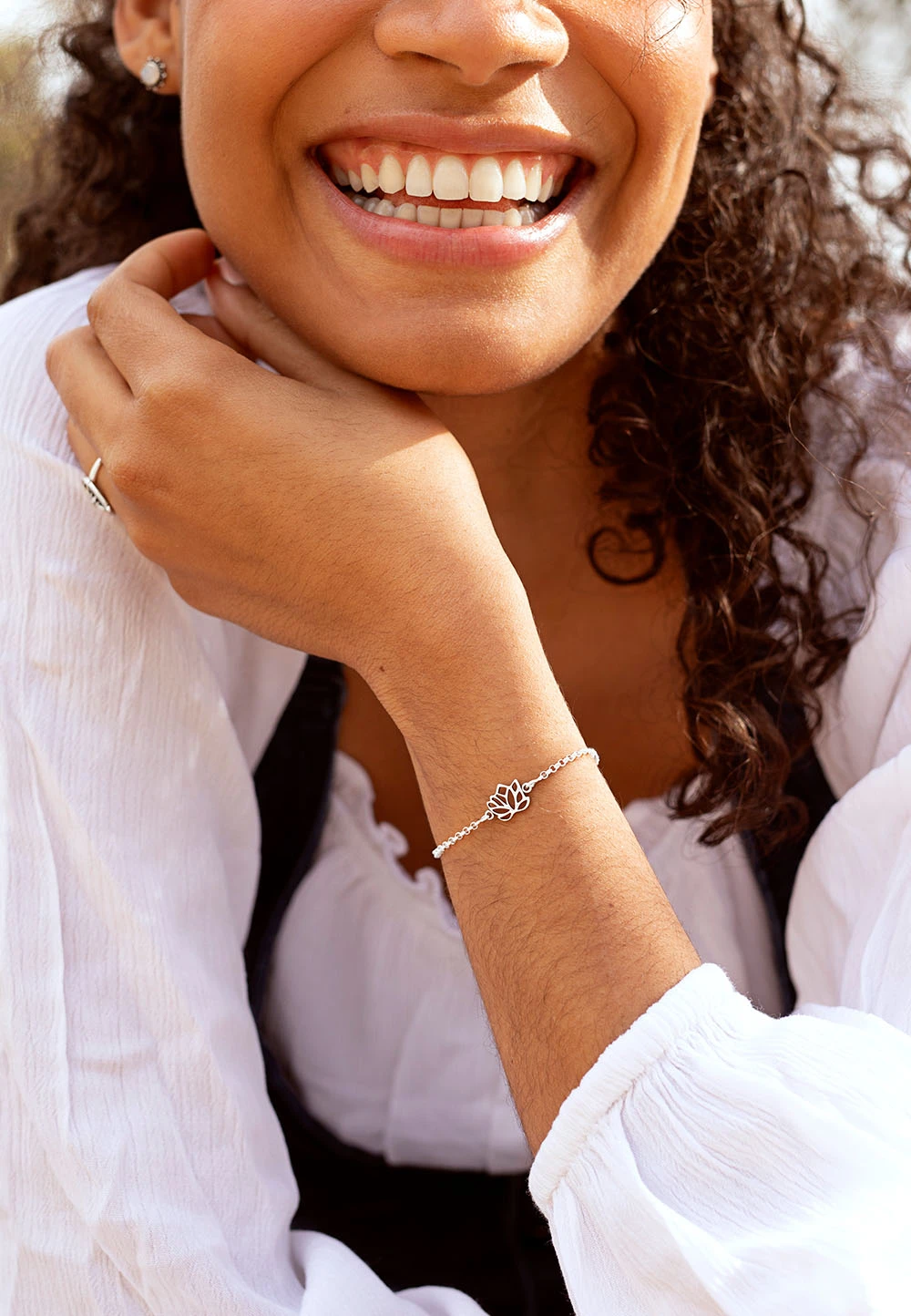 La pulsera LOTO está inspirada en la Flor de Loto, una planta acuática que florece en el agua y tiene un significado de pureza en cuerpo y alma, asociada a la figura del Buda.