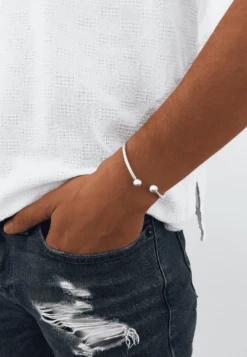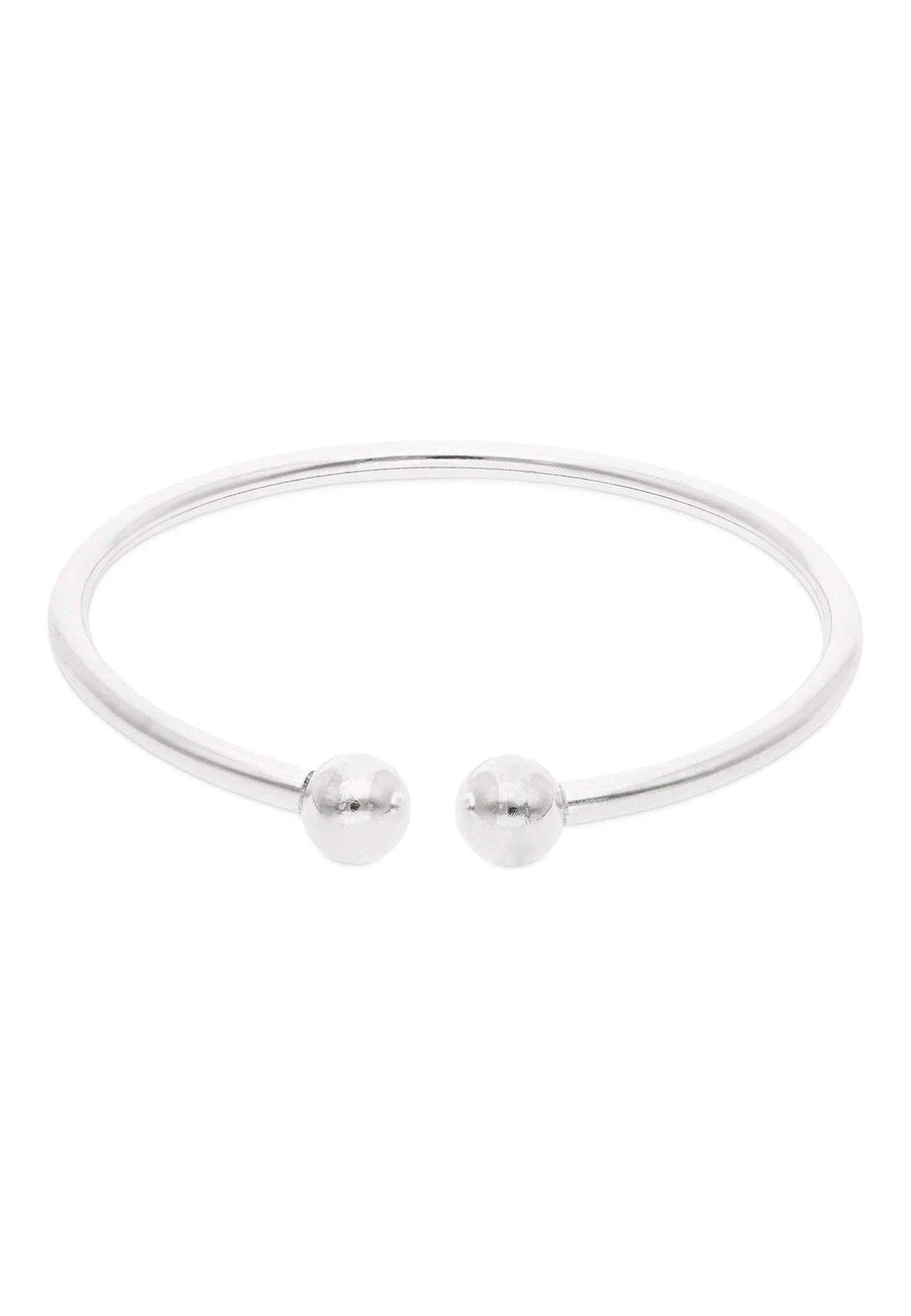 La pulsera MALTI es una de nuestras pulseras más básicas, ya que no tiene ningún tipo de relieve ni detalles más allá de las dos bolitas de plata que tiene en sus extremos, es totalmente lisa.