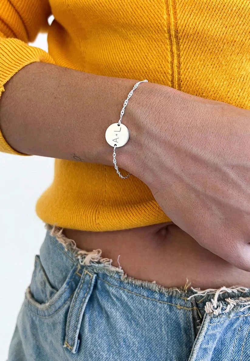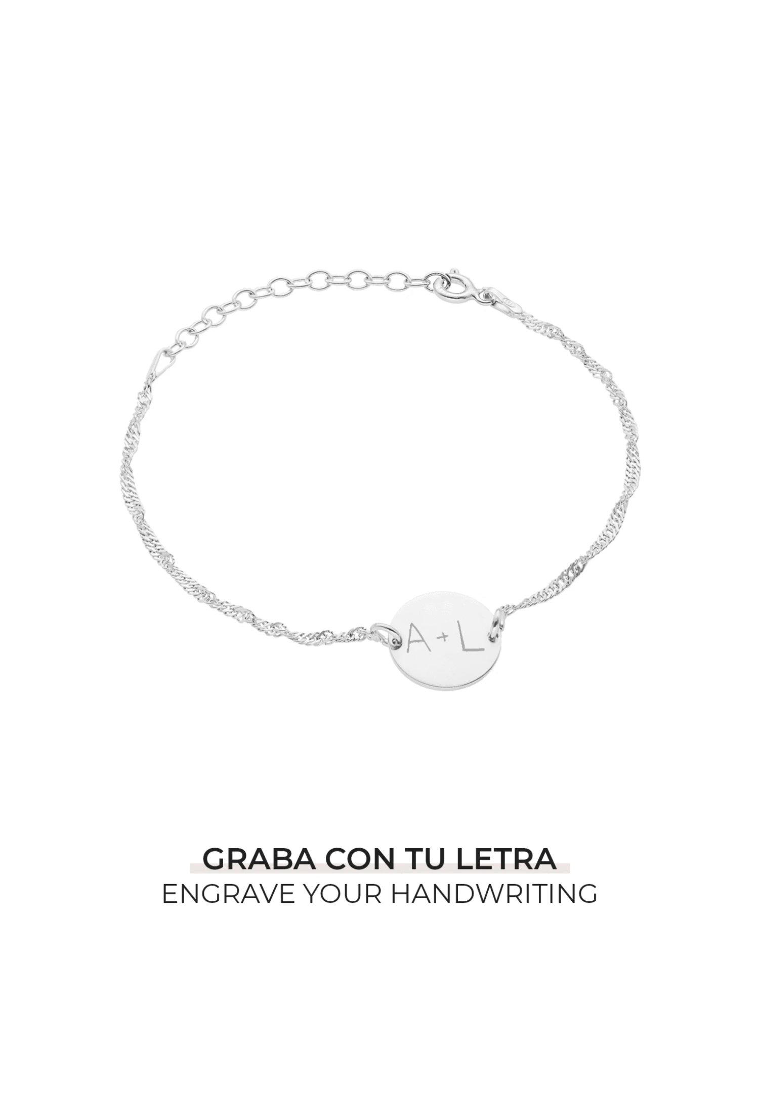Esta pulsera destaca por tener una cadenita singapur muy brillante y una chapa de 12,8 MM donde podrás grabar una palabra por delante y por detrás. Está elaborada en Plata de Ley 925 así que podrás llevarla para cualquier ocasión y con todos tus looks. ¡Te encantará!
