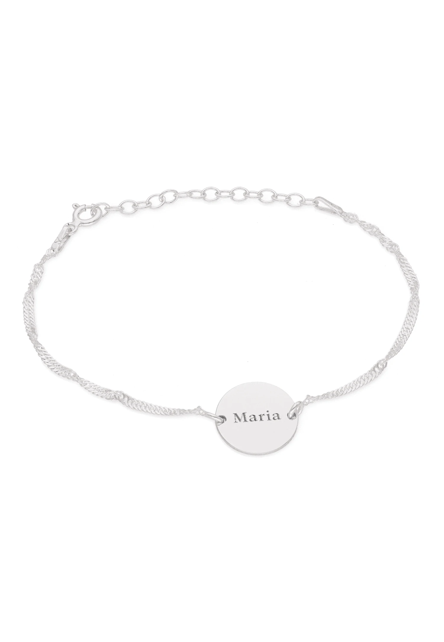 Esta pulsera destaca por tener una cadenita singapur muy brillante y una chapa de 12,8 MM donde podrás grabar una palabra por delante y por detrás. Está elaborada en Plata de Ley 925 así que podrás llevarla para cualquier ocasión y con todos tus looks. ¡Te encantará!