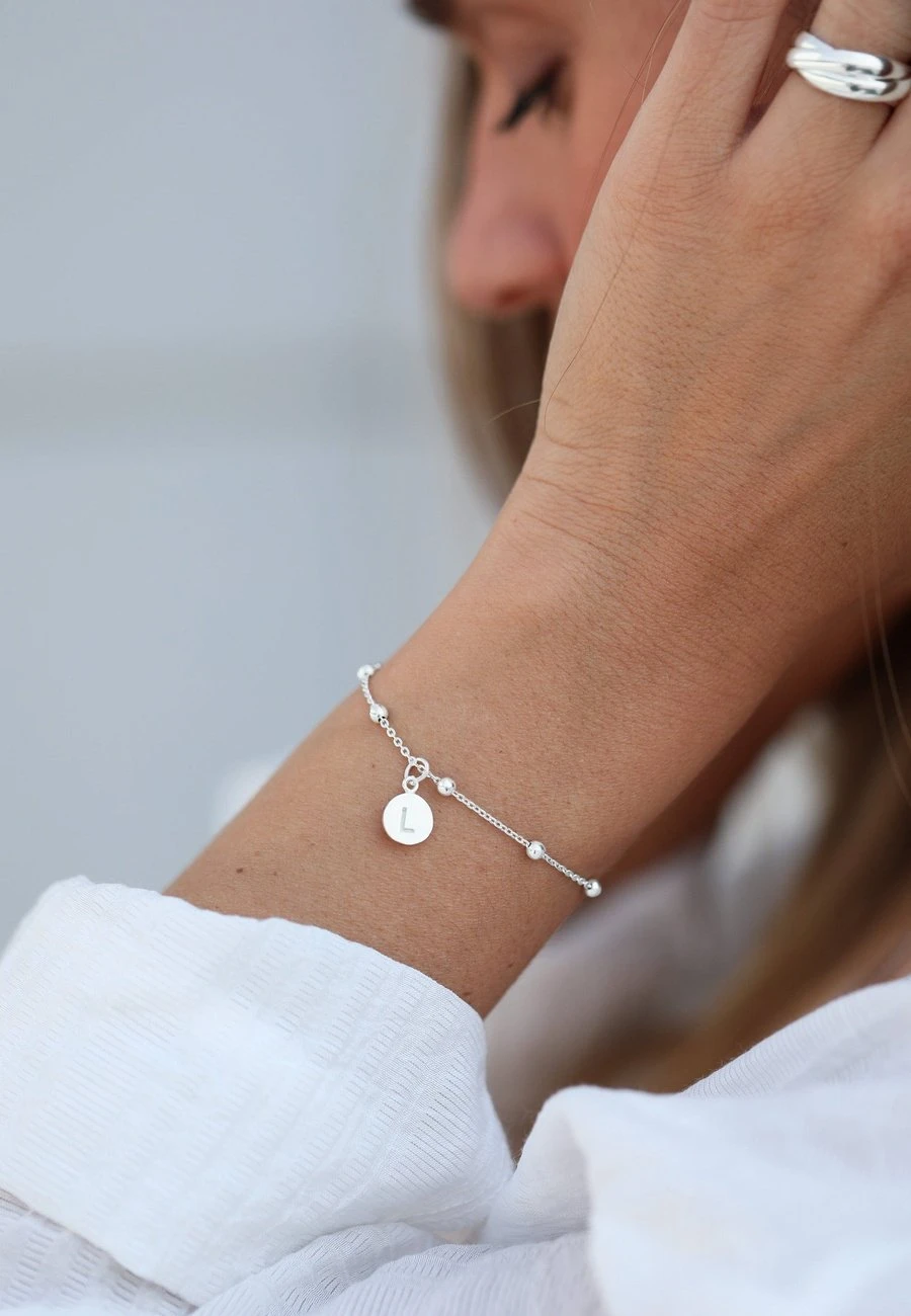 La TIGAT es una pulsera con inicial superoriginal, su cadenita tiene bolitas de plata intercaladas que la hacen aún más atractiva. Puedes elegir más de una letra, hasta cuatro, con un pequeño suplemento por cada letra de más. La pulsera incluye por defecto una inicial.