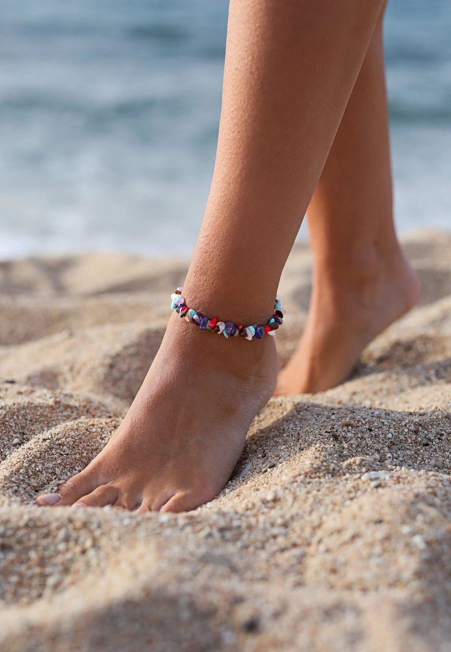 La tobillera ISHARA se adapta a cualquier tobillo, ya que tiene un cierre ajustable de Plata de Ley 925. Su diseño y estilo hace es perfecta para dar un poco de color a tu look. ¡Se convertirá en tu joyita favortita este verano!