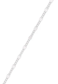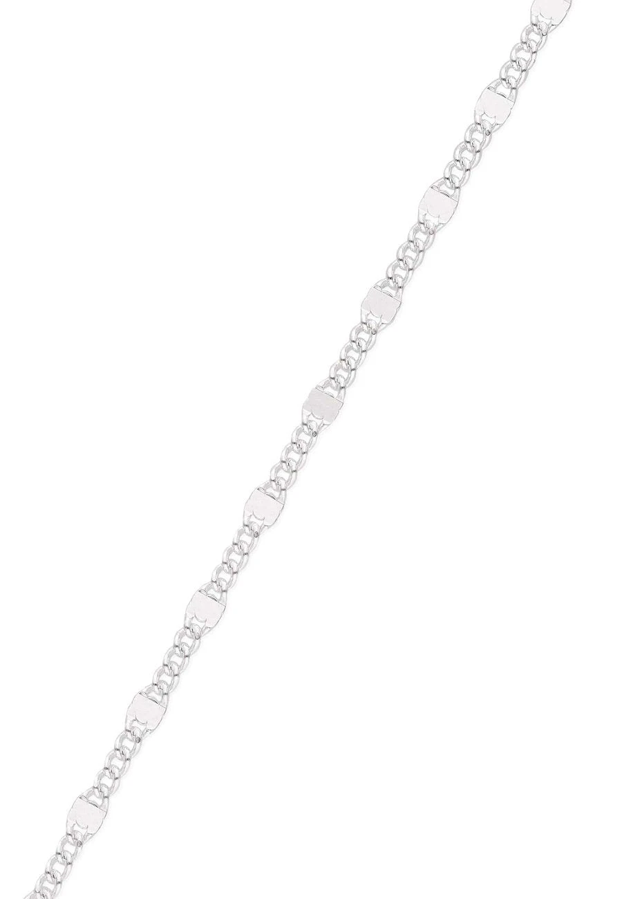 La MANJIT está elaborada con formas cuadraditas y planas de plata repartidas a lo largo de la cadena. Tienen una separación entre sí y están unidas entre pequeños eslabones.