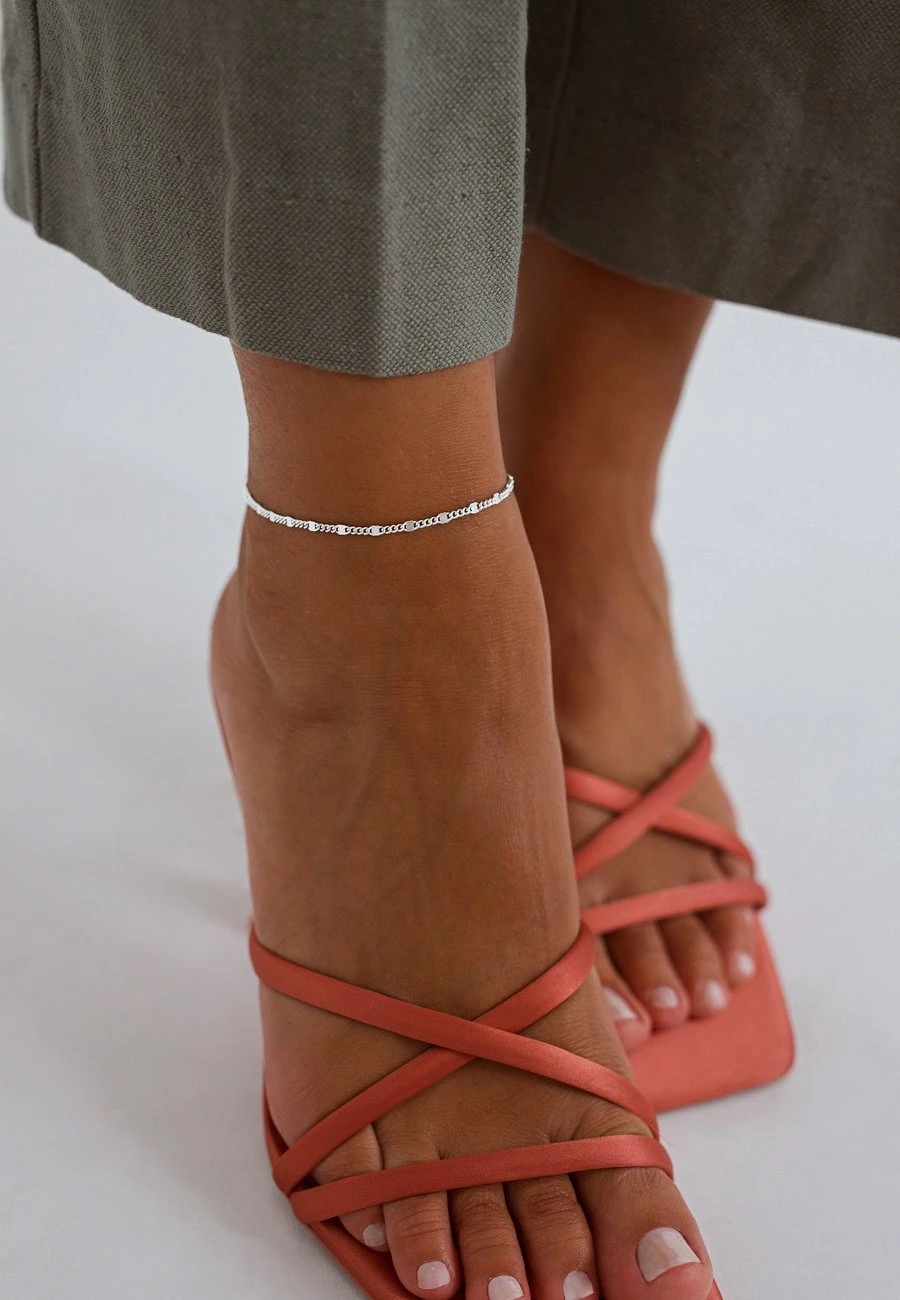 La tobillera MANJIT está hecha en Plata de Ley 925. Queda ideal con cualquier outfit y es perfecta para lucirla en todas las ocasiones. ¡Esta tobillera te enamorará!