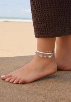 Disfruta del verano con esta exquisita tobillera MOUNA, una joya que te cautivará con su brillo plateado, su comodidad inigualable y su capacidad para realzar tu belleza única. ¡Ilumina tu estilo con un toque elegante!