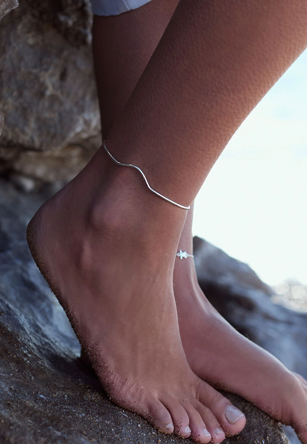 Esta exquisita tobillera Nutan de plata de ley 925 encarna la elegancia sutil y el encanto minimalista. Su diseño rígido presenta una suave onda en la parte lateral del tobillo, agregando un toque de movimiento y gracia a cada paso. Perfecta para el verano, su sencillez atemporal la convierte en el complemento ideal para cualquier ocasión bajo el sol.
